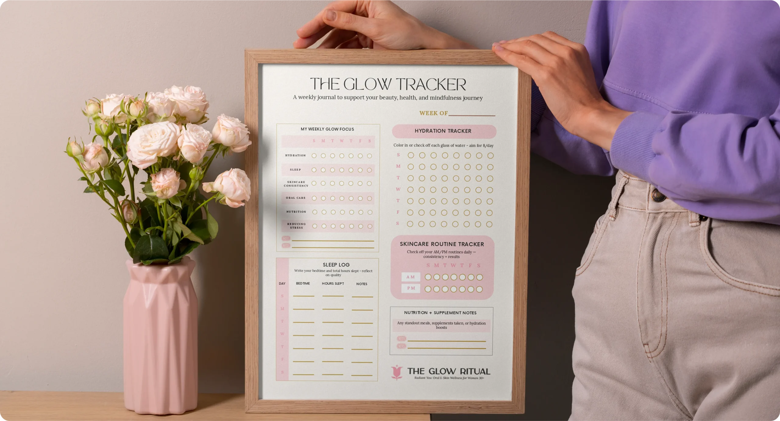 Enter your email below and we’ll send you our beautifully designed Glow Tracker—a gentle weekly journal to help you stay hydrated, sleep better, reflect, and glow.
